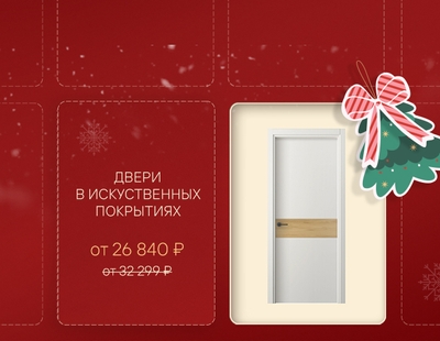 С 5 по 25 декабря при покупке дверей коллекций Centro, Galant, Neo, Planum, Planum Pro, Freedom дарим скидку 20% на дверной комплект (только распашные решения) в искусственных отделках: