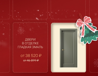 С 5 по 25 декабря при покупке дверей коллекций Centro, Galant, Planum, Planum Pro, Frame, Alba, Dune, Mascot, Esse, Rocca, Neo Classic, Paris, Linea, Softform Velvet дарим скидку 20% на дверной комплект в отделке гладкая эмаль.