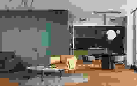 Гостиная с панорамной перегородкой