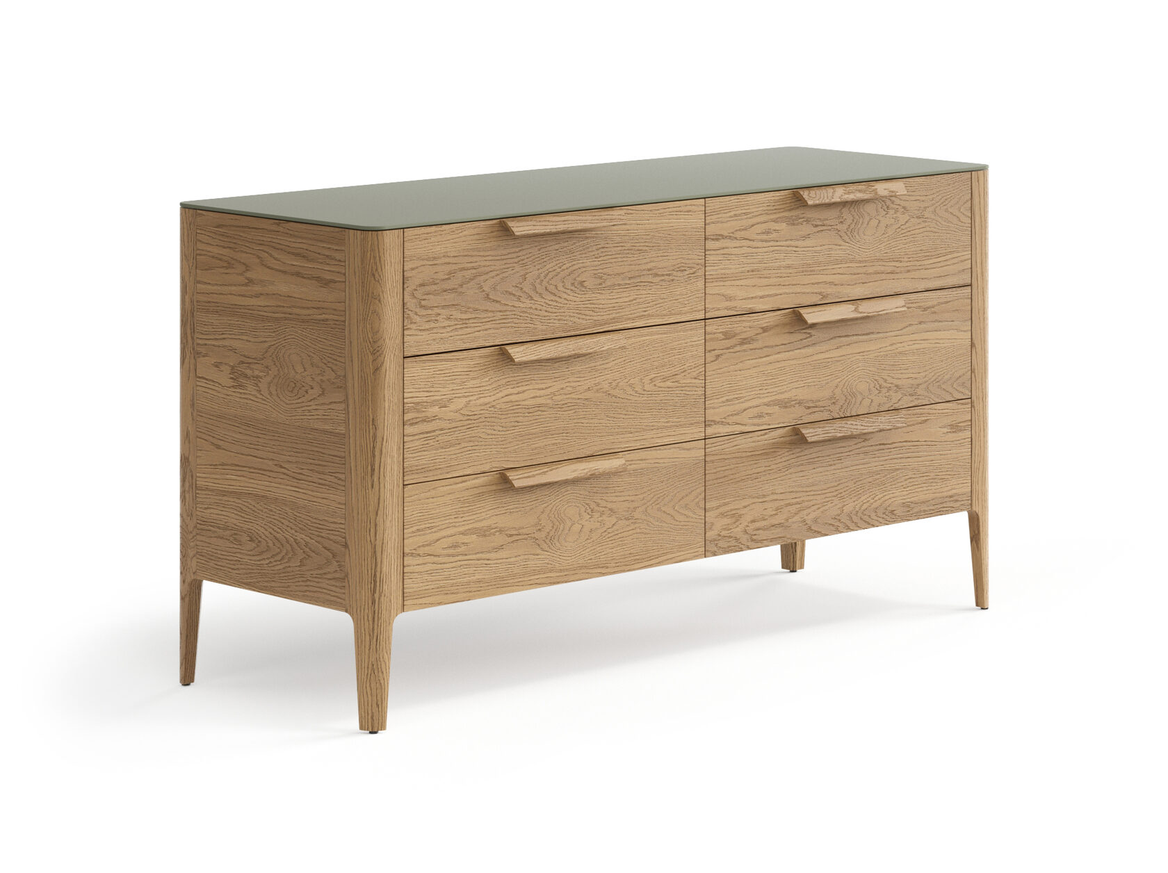 Изделие внесёт в пространство спокойствие и надёжность, искусно сглаженные формы и древесные тёплые отделки добавят природные мотивы. Благодаря скрытым направляющим выдвижных ящиков вид изделия остаётся безупречным всё время пользования. Количество циклов открывания и закрывания — 80 000. Это значит, что если вы будете пользоваться комодом дважды в день, изделие будет оставаться в идеальном рабочем состоянии и радовать вас примерно 55 лет.