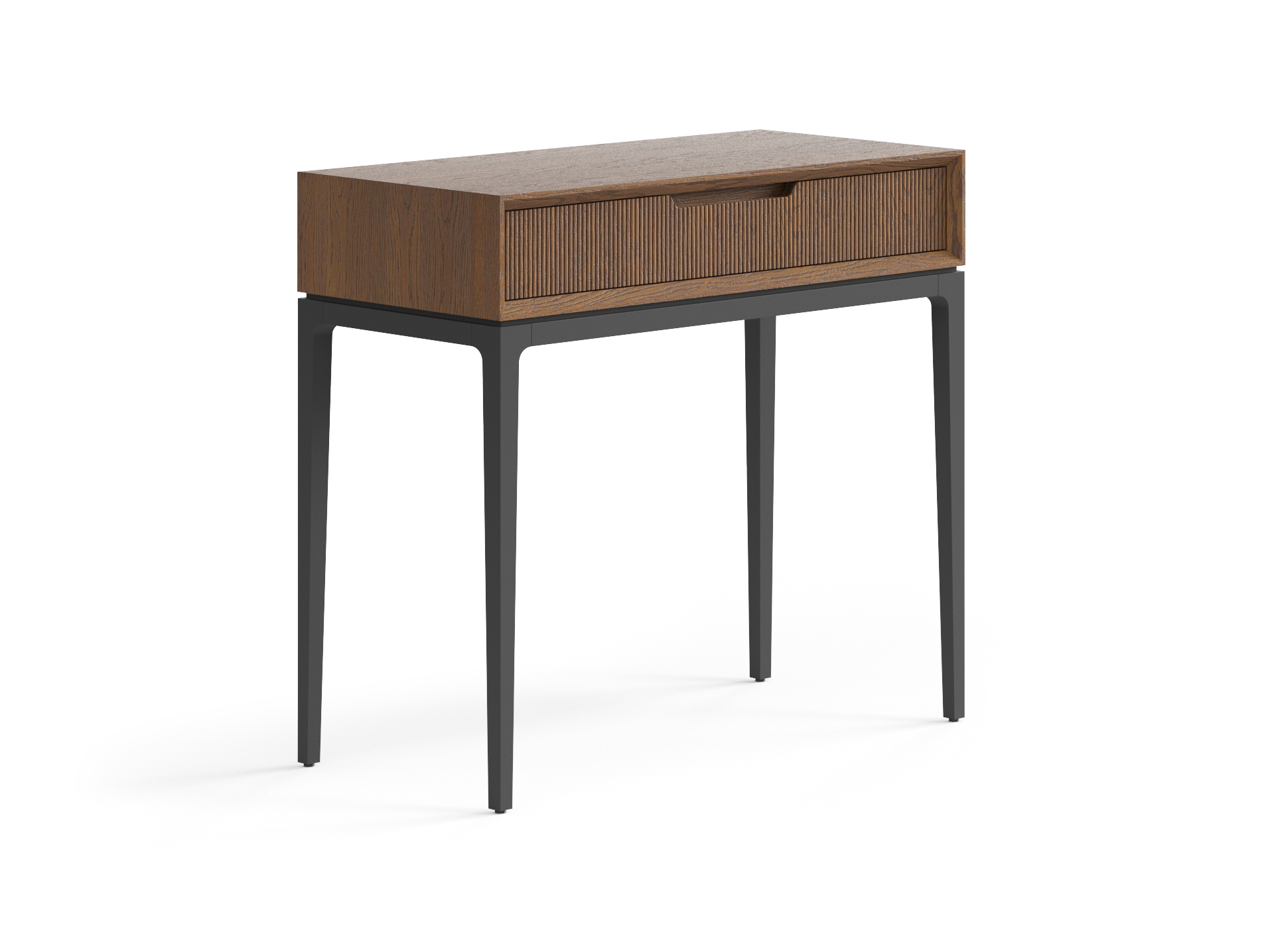 Консоль с двумя выдвижными ящиками на высоких элегантных опорах идеально впишется в любое помещение вашего дома и сделает его особенным. Рифлёная поверхность фасада подчёркивает изысканный вид изделия и приятна на ощупь. А скрытые направляющие ящиков с доводчиками и фрезерованные ручки делают пользование консолью мягким, уверенным и максимально комфортным. Ваза с букетом свежих цветов, любимые сборники литературы и тёплый торшер на консоли создадут истинный уют.