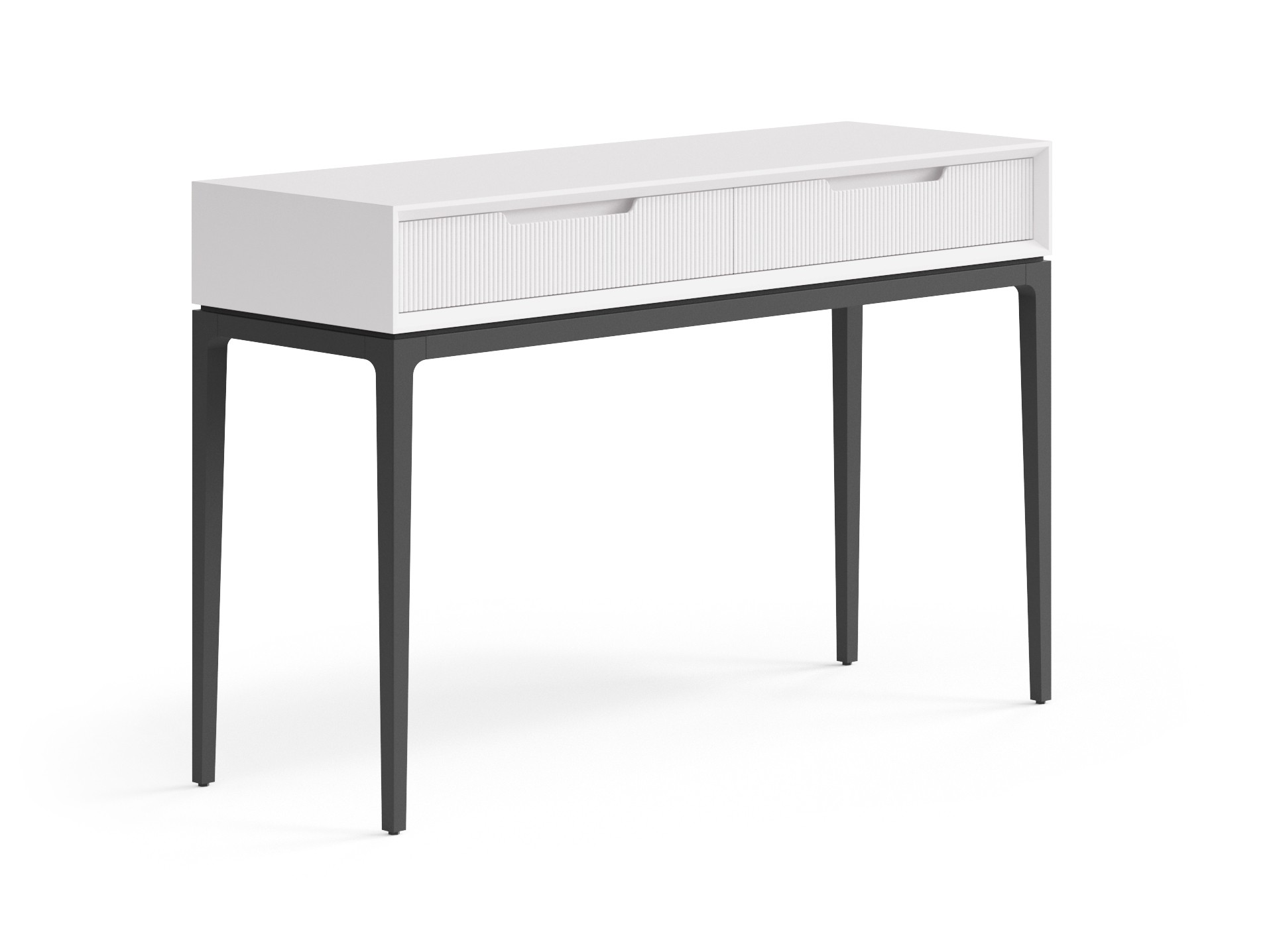 Консоль с двумя выдвижными ящиками идеально впишется в любое помещение вашего дома и сделает его особенным. Рифлёная поверхность фасада подчёркивает изысканный вид изделия и приятна на ощупь. А скрытые направляющие ящиков с доводчиками и фрезерованные ручки делают пользование консолью мягким, уверенным и максимально комфортным. Ваза с букетом свежих цветов, любимые сборники литературы и тёплый торшер на консоли создадут истинный уют.