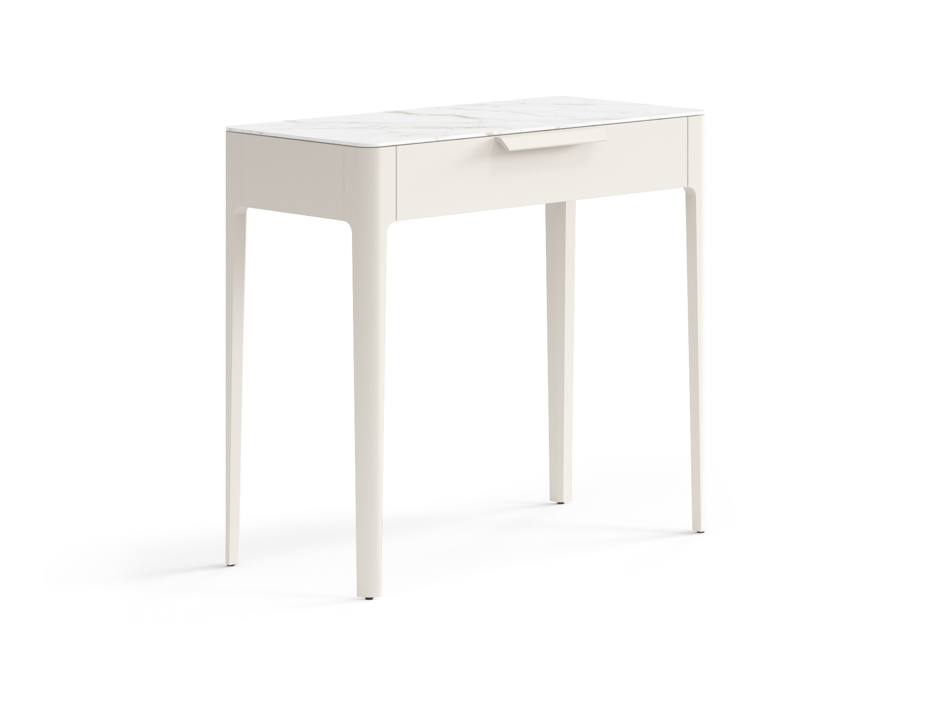 Консоль с двумя выдвижными ящиками на высоких элегантных опорах идеально впишется в любое помещение вашего дома и сделает его особенным. Изысканно сглаженные формы подчёркивают теплоту дерева, наполняют пространство природной гармонией. Скрытые направляющие ящиков с доводчиками и ручки в форме крыла делают пользование консолью мягким, уверенным и максимально комфортным. Столешница выполнена из керамогранита, крепкая поверхность приятна на вид и на ощупь. Ваза с букетом свежих цветов, любимые сборники литературы и тёплый торшер на консоли создадут истинный уют.