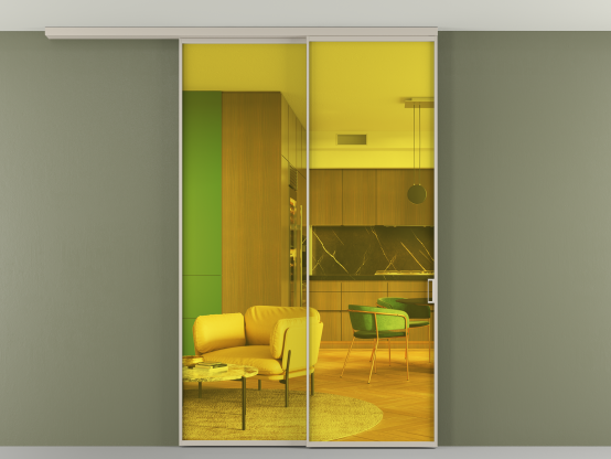 Во всех алюминиевых перегородках, независимо от типа установки, используется компланарный раздвижной механизм, благодаря которому декоративная крышка и полотно находятся в одной плоскости.