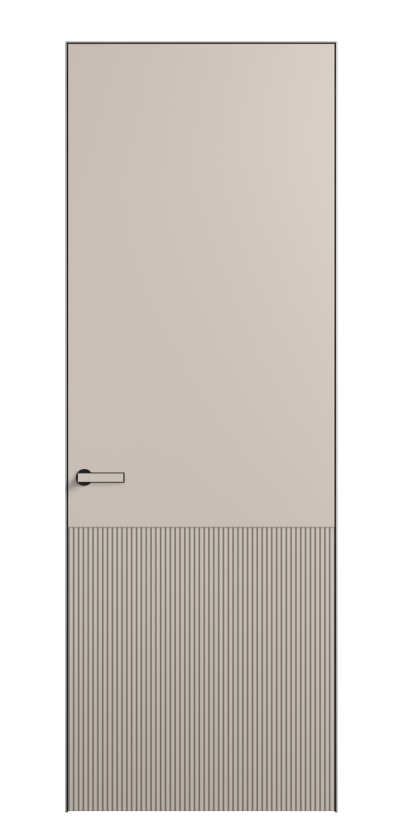 Это полотна с рельефной фрезеровкой. Этот прием делает интерьер объемным, тактильным, вносит интересную текстуру и создает современный образ. Волнистый рельеф может быть выполнен по ламелям из массива дуба в древесных матовых отделках, либо исполнен по натуральному и экологически безопасному материалу — ХДФ, покрытому гладкой эмалью актуальных оттенков.