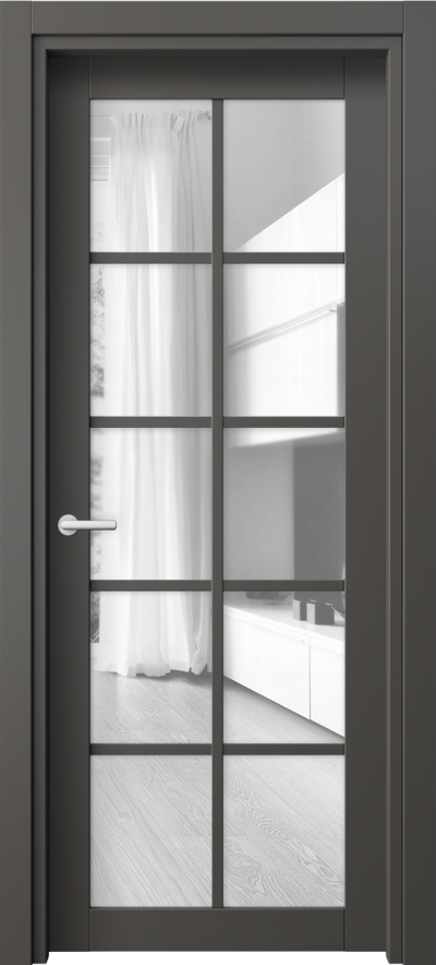 Дверь межкомнатная 2106 ПЭГФ Прозрачное стекло. Цвет ПЭТ графитовый. Материал ПЭТ. Коллекция Нео. Картинка.