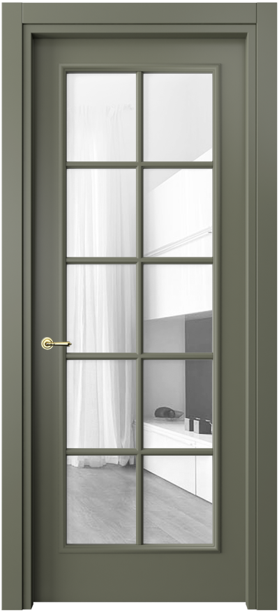 Дверь межкомнатная 8102 МОТ Прозрачное стекло. Цвет Матовый оливковый тёмный. Материал Гладкая эмаль. Коллекция Paris. Картинка.